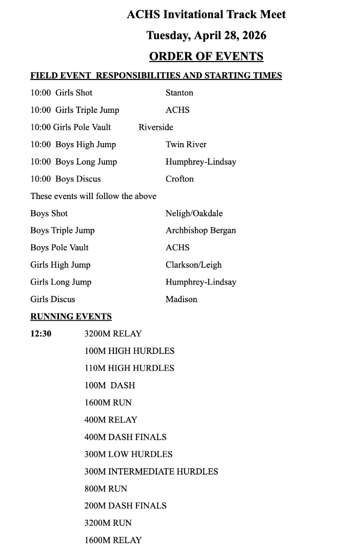| 4-30-26 | 10:00 | Humphrey St. Francis Invite | Humphrey |